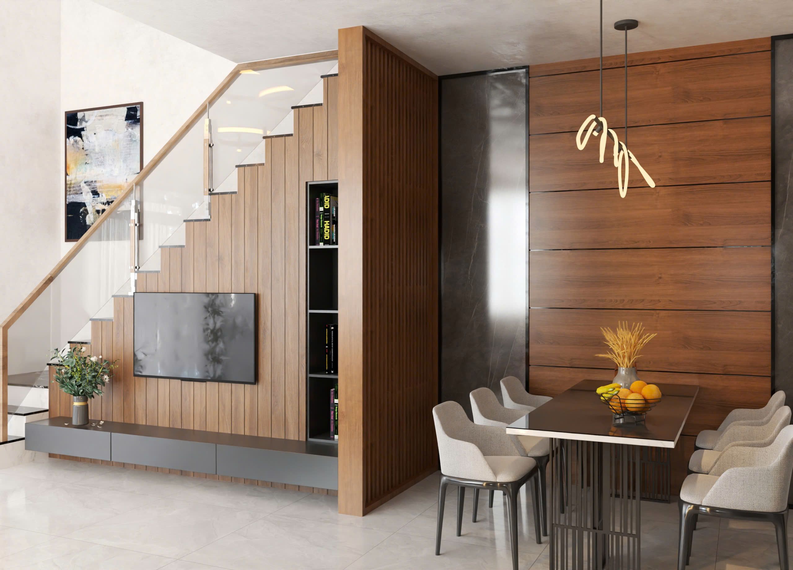 Không chỉ chú trọng phần kiến trúc, QA HOME còn đặc biệt đầu tư vào thiết kế nội thất, giúp không gian bên trong thống nhất phong cách, tiện nghi và sang trọng. Với định hướng hiện đại – tối giản, đội ngũ thiết kế sử dụng vật liệu gỗ công nghiệp cao cấp kết hợp kính và đá tự nhiên, tạo nên một tổng thể hài hòa, tinh tế và bền đẹp theo thời gian.