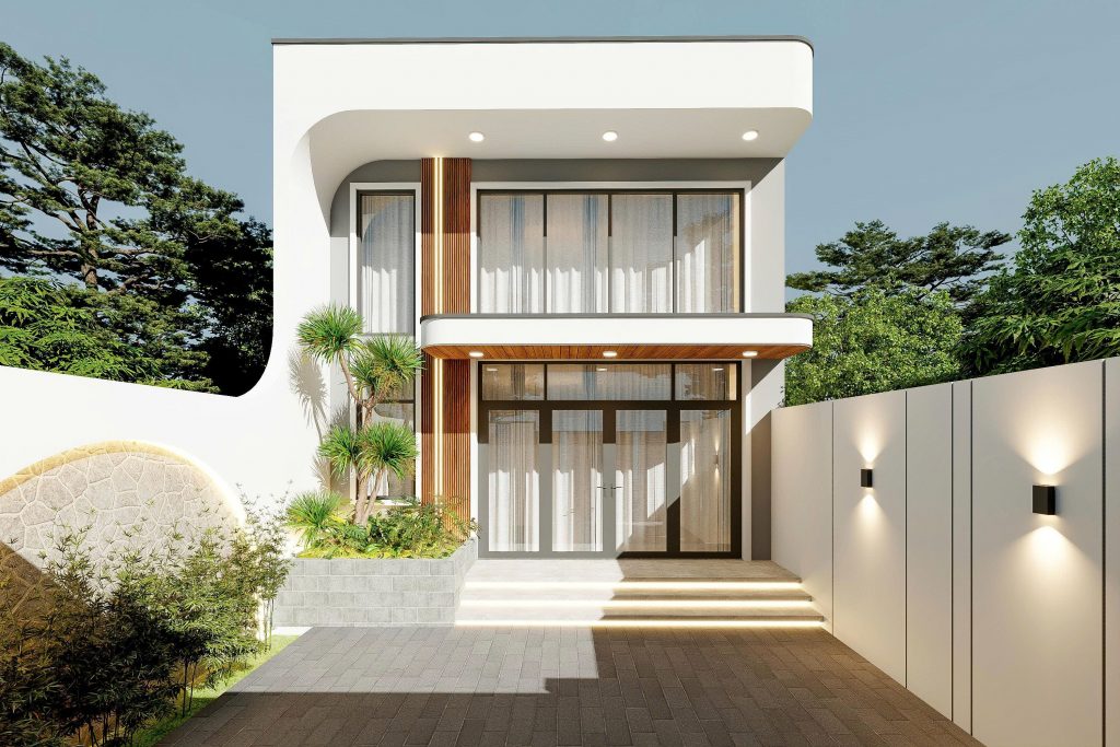 Phần gác lửng được thiết kế vươn ra nhẹ phía trước, kết hợp ban công nhỏ giúp tạo điểm nhấn và tăng diện tích sử dụng. Mặt bên có hệ cửa sổ lớn bằng kính cường lực, giúp lấy sáng tự nhiên, giảm tiêu thụ điện năng, đồng thời kết nối không gian bên trong với thiên nhiên bên ngoài.